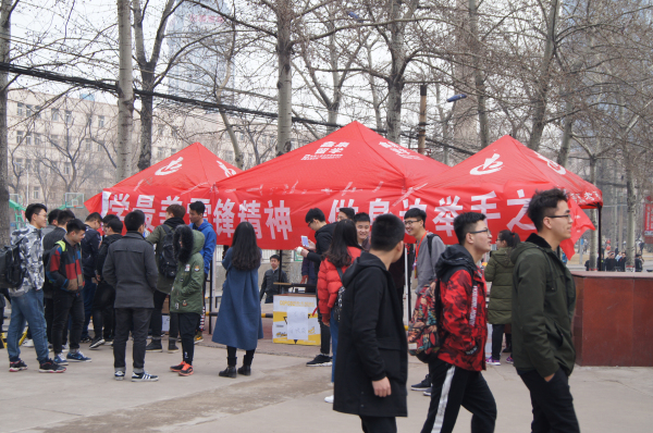 为迎接全国第55个学雷锋纪念日,积极响应共青团“青春志愿行 奉献新时代”活动号召,304永利集团于2018年3月7日在虎峪校区开展了形式各样的学雷锋系列活动。