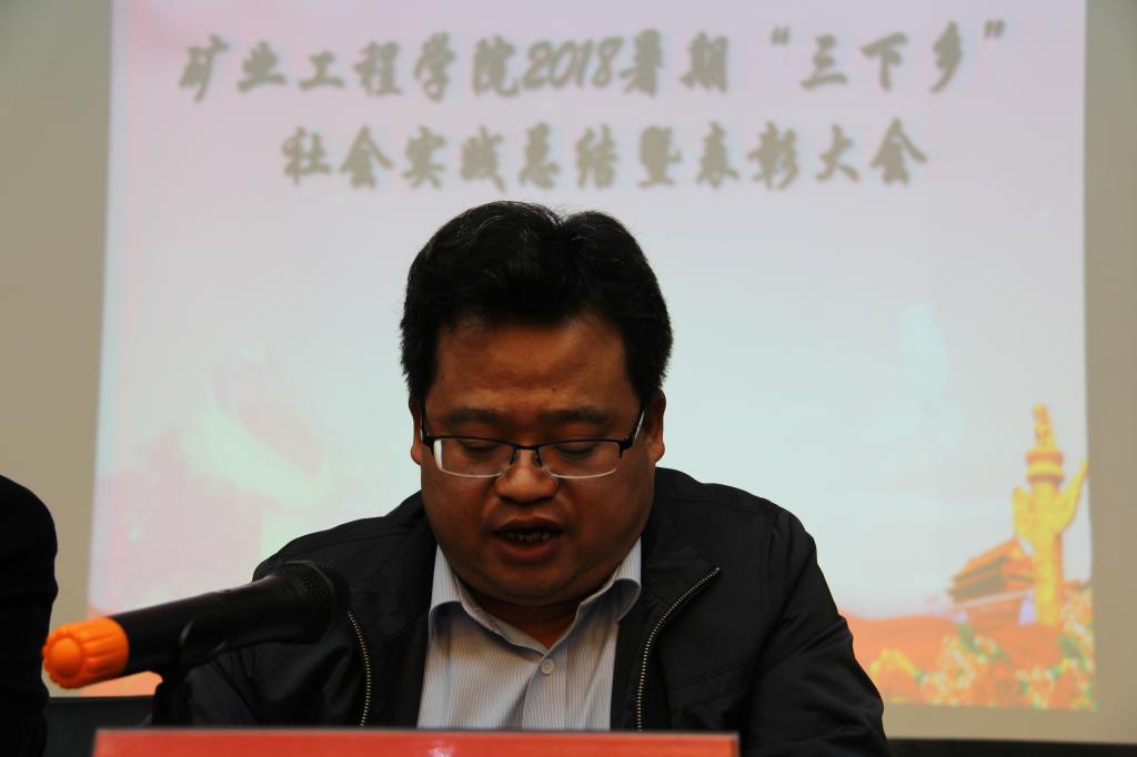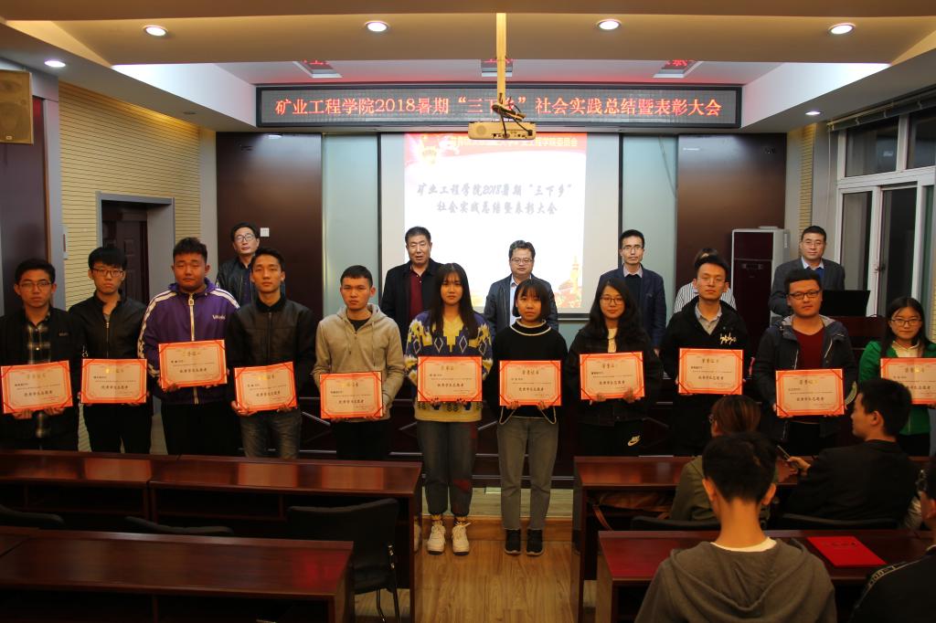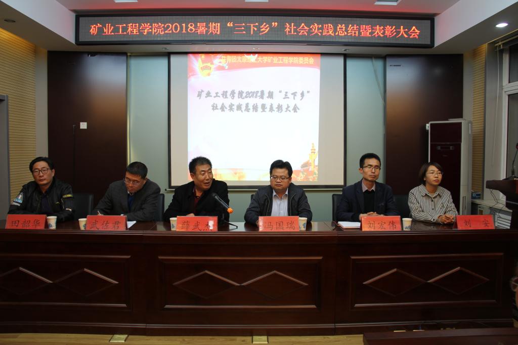 2018年10月19日晚,304永利集团暑期“三下乡”社会实践总结暨表彰大会在虎峪校区采矿楼学术厅顺利举行。学院党政领导薛武杰、冯国瑞、武佐君出席;院团学工作负责人刘宏伟、田韶华、刘安、陈保宇以及65名实践队员代表参加了此次会议。武佐君副书记主持会议。