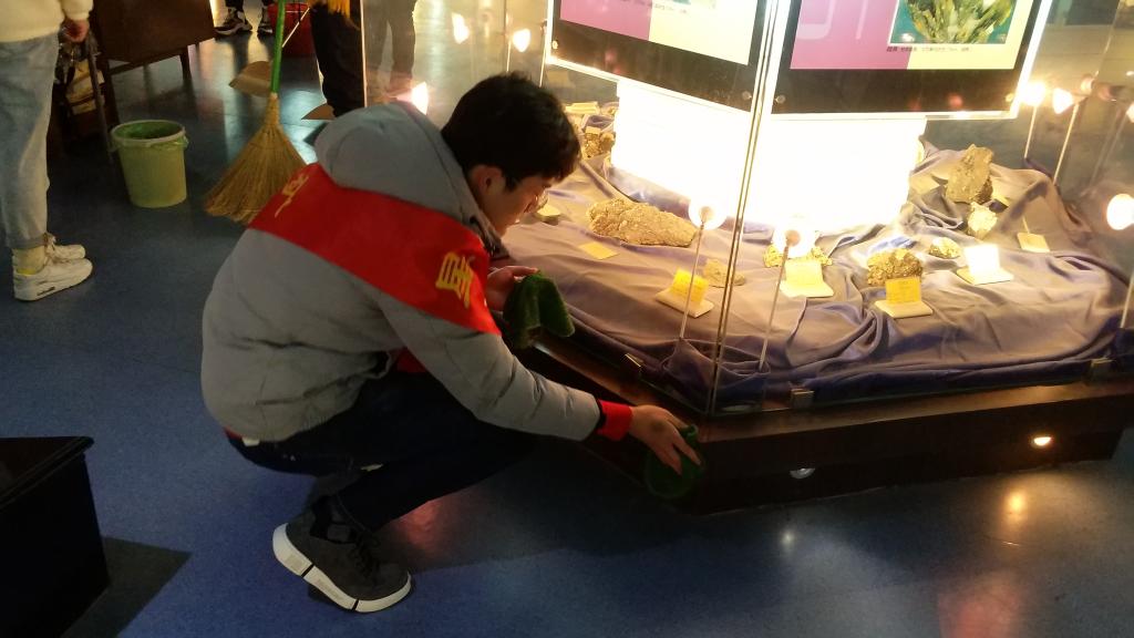 上午九点,志愿者们进入地球科学馆,大家撸起袖子,拿起扫帚抹布开始对各区域打扫,经过志愿者们的努力,很快将整个地球科学观打扫得焕然一新。随后志愿者们在讲解员的带领下认真参观了地球科学馆,看过了一件件展品之后,同学们学习到了很多地质知识,对地球历史有了更加深刻的认识,收获颇丰。