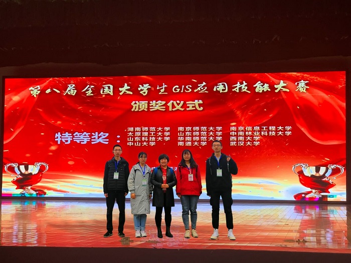 近日,由中国地理信息产业协会、中国地理学会、教育部地理科学类教学指导委员会主办,中国地理信息产业协会教育与科普工作委员会和安徽师范大学等单位承办的2019年第八届全国大学生GIS应用技能大赛决赛在安徽芜湖安徽师范大学举行。我院测绘系地理信息科学专业的邹楚、齐梦佳、申高阳和牛昊昱四位同学组建的代表队积极备赛,耐心训练,不骄不躁,在比赛中沉着冷静,凭借扎实的GIS基本知识和专业应用能力获得本次大赛特等奖,侯莉琴老师获得本次竞赛指导教师特等奖。