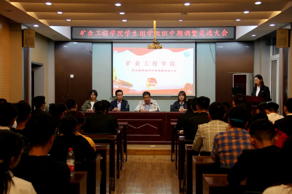 2020年9月24日晚,304永利集团学生团学组织中期调整竞选大会于采矿楼二层学术报告厅召开。学院党委书记薛武杰、学工办主任刘宏伟、团委书记张丁香、团委副书记刘安出席了会议,参加会议的还有各学生组织代表和全体2019级班长团支书。