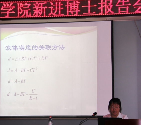 2012年9月28日下午,在矿业学院学术报告厅,矿物加工系博士乔燕做了题为《常见物性测定及关联估算方法研究》报告。