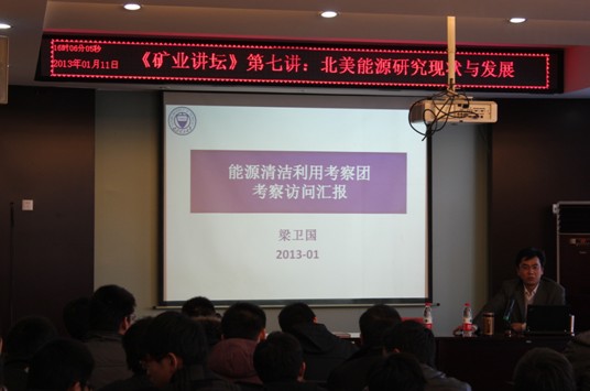 2013年1月11日下午4点,矿业学院采矿楼学术报告厅,我院院长梁卫国教授做客《矿业讲坛》,做了题为《北美能源研究现状与发展》的报告,并与学院各专业研究生开展了长时间的学术交流互动。