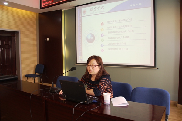 韩晋平编辑重点从《煤炭学报》的基本情况、《煤炭学报》的稿件处理流程、作者最容易忽视的问题、作者最关心的问题、JCSME基本情况、《煤炭学报》增刊等几个方面做了介绍。