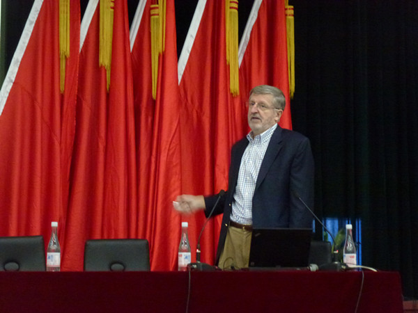 11月4日上午,我院测绘系承办的学术活动在迎西校区博学楼的二层报告厅举行,此次邀请的是美国科学院院士、加州大学圣巴巴拉分校Michael Frank Goodchild教授,并做了题目为“大数据、云计算、英特网与地理信息系统”的学术报告。副校长郭敏泰教授出席并主持了报告会。