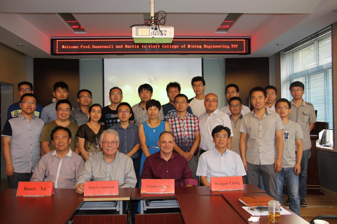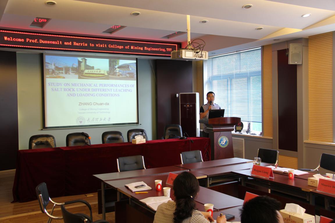 2015年7月19日,加拿大滑铁卢大学地球和环境科学系Maurice B.Dusseault教授、加拿大阿尔伯塔大学地球与大气科学系Nicholas B. Harris教授和滑铁卢大学徐宝慈教授一行3人访问304永利集团,和我院原位溶浸采矿课题组的部分老师和博士研究生进行了为期一天的学术交流活动。会议由梁卫国院长主持,交流内容围绕“压缩空气蓄能技术、页岩气水力压裂技术、页岩气开采地质评价、油页岩注热蒸汽压裂技术、岩盐溶腔油气储存技术”等国际能源领域的热点方向展开。