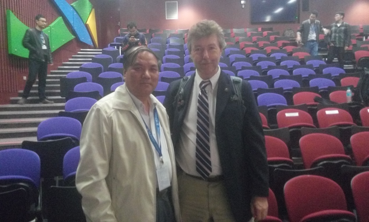 图2 赵阳升教授与美国工程院院士Dereck教授交流合影