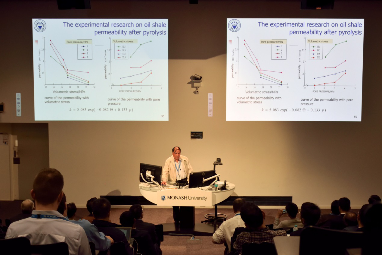 2016年9月27日至10月1日,我院赵阳升教授、张倍宁博士赴澳洲参加国际地质力学-地球能源-地球资源学术研讨会(International Conference on Geo-mechanics, Geo-energy and Geo-resources)。来自20多个国家,近200名代表参加了此次会议。会上,赵阳升教授做了《Evolution of physico-mechanical properties of granite under high temperature and high pressure & HDR exploitation---Evolving Porous Media mechanism, experiments, application》的主题报告,张倍宁博士在分会场进行了题为《Supercritical CO2 permeability and swelling in naturally fractured large coal mass》口头报告。会议间隙,赵阳升 教授与国际同行就地球能源开采方面的问题进行了热烈的讨论,并达成了一些初步的合作意向。会后,赵阳升教授一行参观了Monash大学及联邦科学与工业研究组织(Commonwealth Scientific and Industrial Research Organization)的实验室,并就一些实验情况进行了交流。