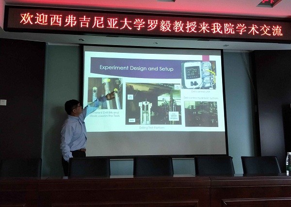 罗毅副教授详细介绍了自己过去3年来从事的矿井锚杆支护方面的科学研究工作,阐述了美国井工矿顶板的锚杆支护工艺及其挑战,展示了顶板锚杆支护范围内岩层的地质填图技术及原理,通过收集打钻时的数据,提出通过适当调整钻孔施工工艺,达到降噪的目的。同时罗毅副教授还介绍了该技术在减少矿尘方面的应用。精彩报告之后,罗毅副教授回答了现场师生的提问,现场讨论和交流热烈,与会师生受到很大的启迪。这次讲座对我院师生学习美国矿井锚杆支护方面的先进技术、了解中美学者研究手段和技术的差距,增强自身科研意识、创新思维和实践能力具有重要的意义。