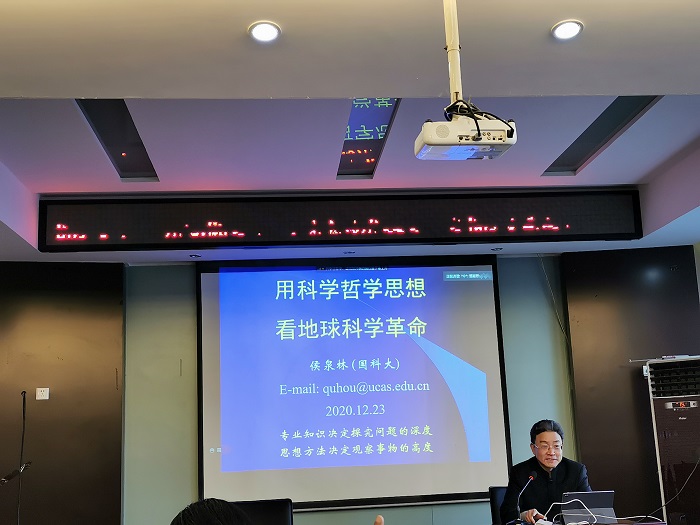 侯泉林教授介绍了“用科学哲学思想地球科学革命”,提出在科研问题中存在一个最基本的“范式”特征。强调科研工作者在研究科学问题时应具备严谨的态度,学会结合哲学思维去思考地质工作中存在的问题。