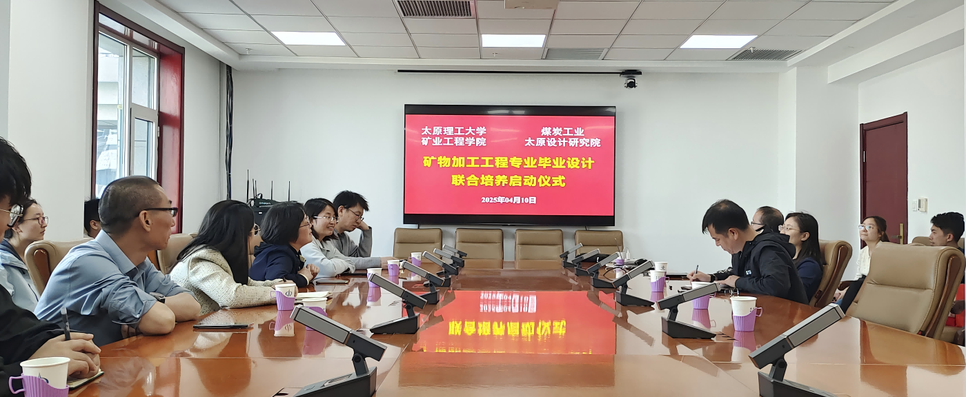 4月10日下午,我院矿物加工工程系与煤炭工业太原设计研究院联合指导本科毕业设计启动仪式在设计院九层会议室举行,出席人员包括设计院选煤所万巨明、郭涛、常艳芬、杨刚军,及我院教师李志红、杨润全、刘爱荣、孙玉金、陈茹霞和10名毕业班学生代表。