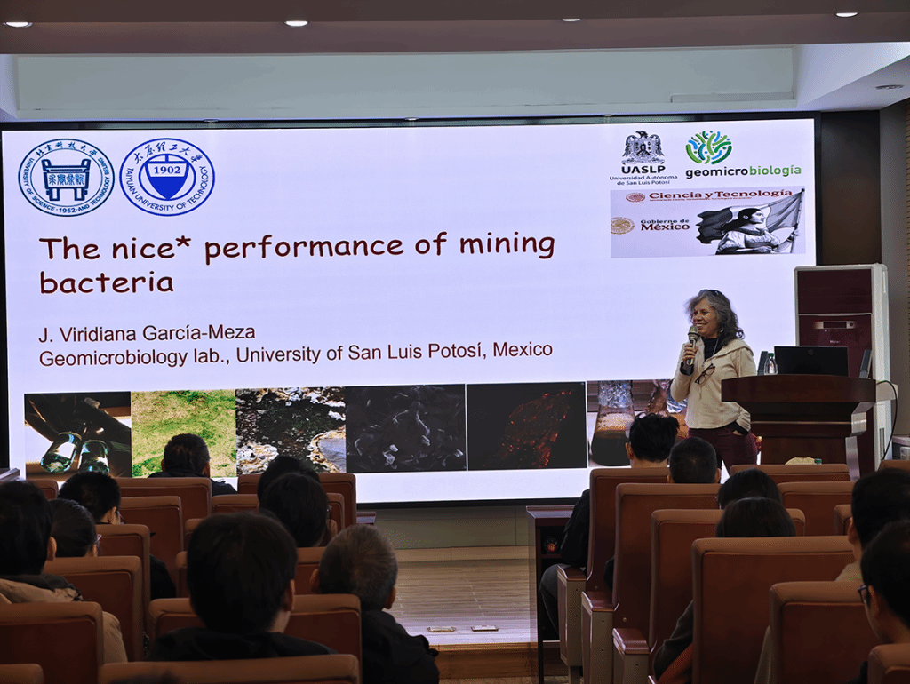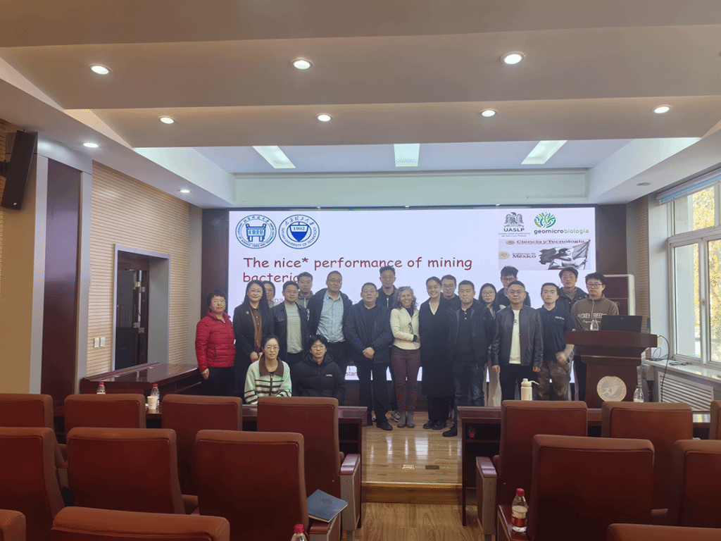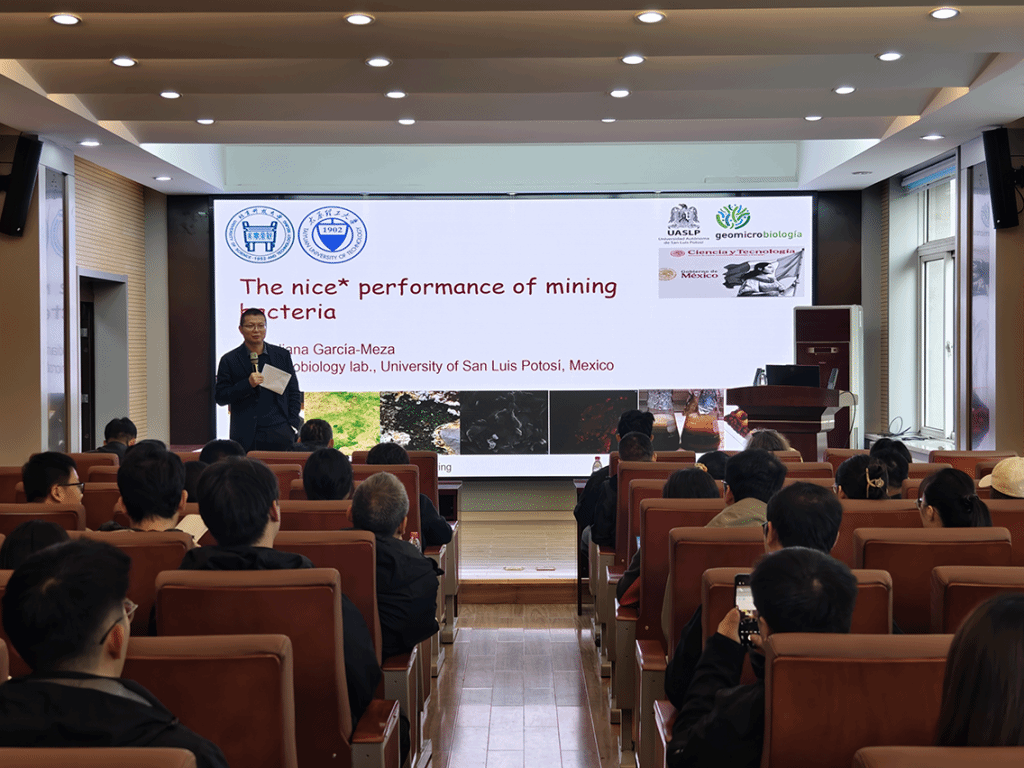 2025年11月4日上午,墨西哥圣路易斯波托西自治大学比莉安娜教授来304永利集团访问交流。比莉安娜教授在虎峪校区采矿楼二层会议室做了题目“The 'nice' performance of mining bacteria”的学术报告,学术报告会由副院长冯子军教授和矿物加工系主任刘生玉教授主持,304永利集团五十余名师生听了报告。学术报告主要围绕微生物与环境相互作用的机理展开,介绍了不同种类的微生物在矿物表面的生长及其衍生物的形成对矿物浸出的作用,并介绍了相关研究在工业中的应用。在交流互动环节中,参会师生与比莉安娜教授进行了热烈的讨论与交流,参加学术交流会的师生收获颇丰。此次交流活动促进了永利集团304与墨西哥圣路易斯波托西自治大学的交流合作,旨在深化两校在矿业工程及生物工程的交叉领域合作,促进学术互鉴与永利集团。