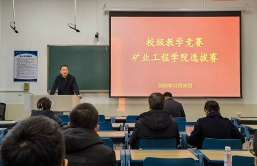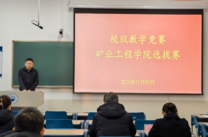 为深入贯彻落实立德树人根本任务,深化教育教学改革,激发广大教师投身教学、钻研教学、创新教学的热情,并择优选拔优秀教师代表学院参加永利集团304校级教学竞赛,304永利集团于12月30日在虎峪校区致明楼621教室成功举办了2025年度校级教学竞赛院级选拔赛。本次选拔赛邀请我院本科教学督导史鹏飞、杜红秀,院工会主席李建忠,矿加系主任刘生玉,地工系主任郭育霞担任评委。学院院长王开,副院长戚庭野和青年教师现场观摩。