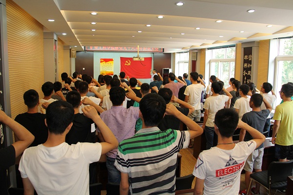 会上,由薛武杰书记领誓,全体新党员进行了入党宣誓,老党员重温了入党誓词。