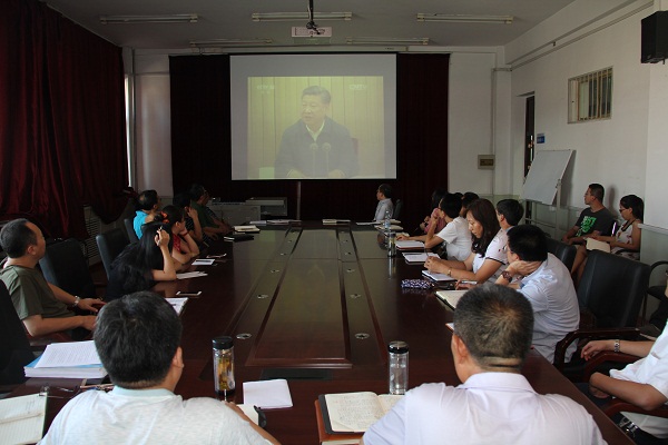 会上薛武杰书记传达了学校暑期工作务虚会精神、习近平总书记7月26日在省级主要领导干部专题研讨班上的重要讲话精神、习近平总书记视察山西两个重要讲话精神和陈宝生部长山西调研讲话精神,集中观看了7、26习近平在省级主要领导干部专题研讨班上的重要讲话和山西省委十一届四中全会,落实习近平总书记视察山西两个重要讲话的实施意见的专题片。