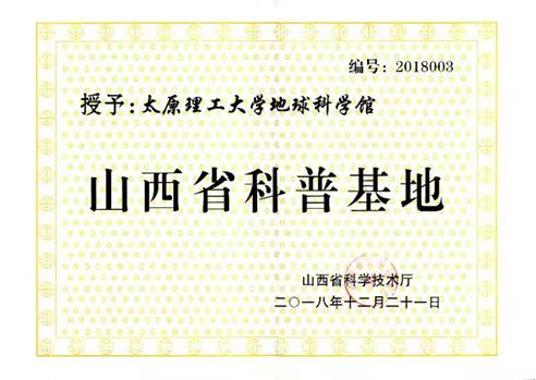 304永利集团地球科学馆荣获“山西省科普基地”称号