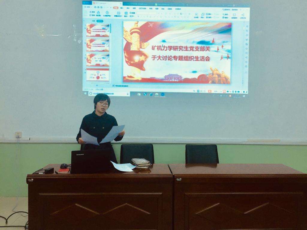 最后刘安书记作了述职报告。她表示矿机力学研究生党支部自大讨论以来,紧紧围绕主题,通过深化学习,相互交流,查摆问题,剖析问题并提出整改措施,在今后的学习工作中,党支部要坚持党建统领全局,认真学习贯彻习近平新时代中国特色社会主义思想、树牢“四个意识”、坚定“四个自信”、坚决做到“两个维护”和履职践诺、担当作为、真抓实干,积极投身到“双一流”建设中。