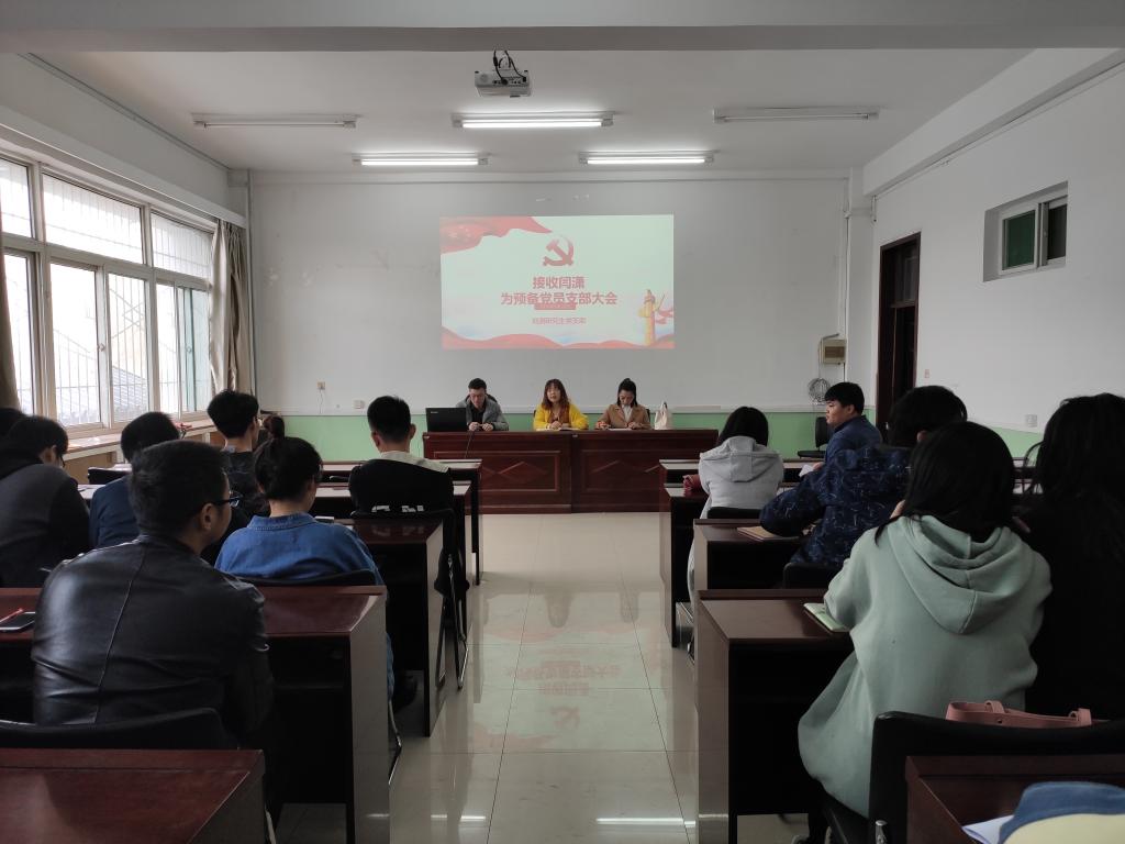 2019年3月29日中午,地测研究生党支部在致明楼208召开接收预备党员大会。地测研究生党支部全体党员参加了会议,会议由党支部书记张丁香主持。