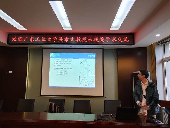 吴希文教授在报告中,首先介绍了合成孔径雷达干涉测量技术的原理及面临的挑战,阐述了利用时间序列InSAR进行地表形变监测的思路与方法,并结合在印度尼西亚、澳大利亚和我国广东地区的项目案例,展示了时序InSAR分析技术在公路路基滑坡、海岸带监测和矿区沉降监测等方面的应用前景;对该技术未来的研究方向做了展望。参会师生们就当前研究中关切的问题同吴教授进行了交流,现场气氛活跃。