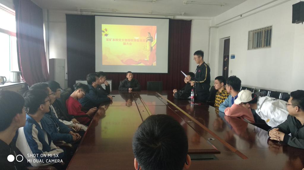2019年3月28日中午,采矿本科党支部在致明楼318召开接收预备党员大会。采矿本科党支部全体党员参加了会议,会议由党支部书记洪俊主持。