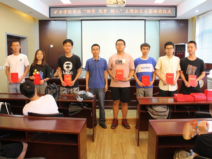 刘宏伟宣读矿业学院喜迎新中国成立70周年首届“助学·筑梦·铸人”主题征文大赛的表彰决定并对获奖受助学生表达了祝贺,寄语学生要把习近平新时代中国特色社会主义思想转化为实际行动,不忘初心,好好学习,不断提高自己,以实际行动迎接新中国成立70周年!