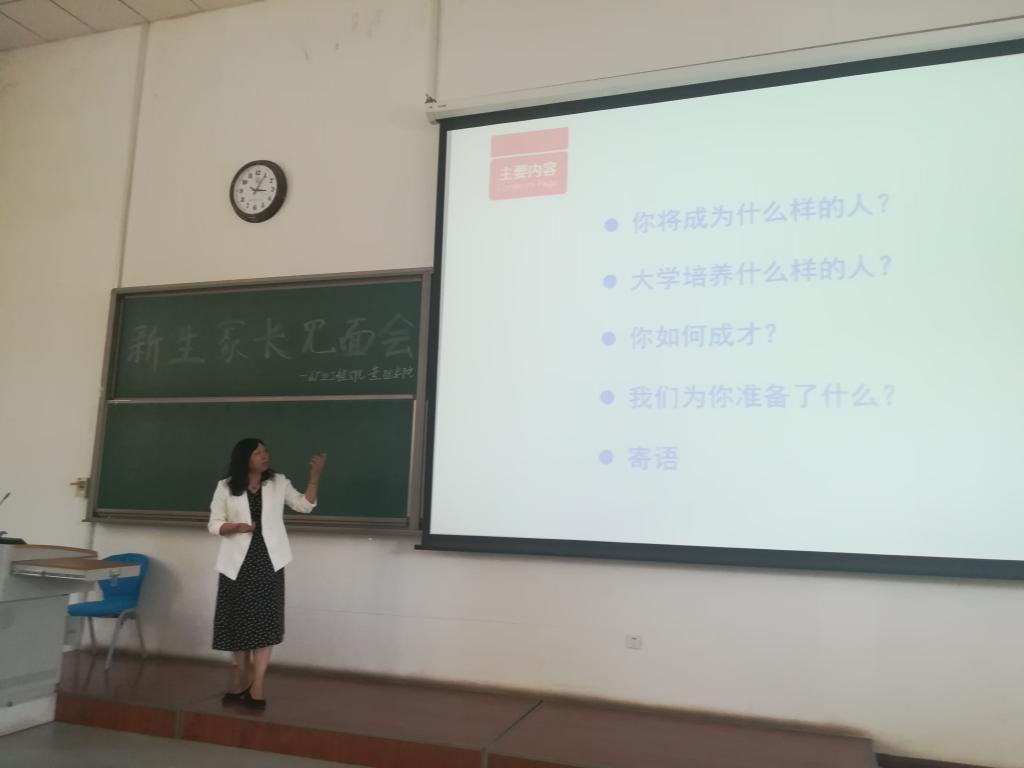 党委书记薛武杰对大家的到来表示热烈的欢迎,对学院的历史、如何过好大学生活等进行介绍,希望各位家长关注学生成长,要与学校、学院共同合作,促进学生全面发展。