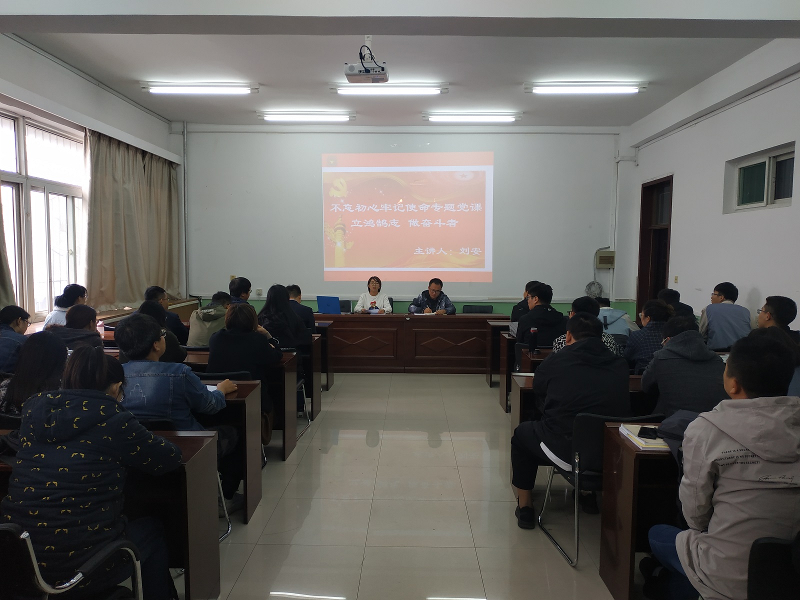 为深入学习贯彻习近平新时代中国特色社会主义思想和党的十九大精神,扎实推进“不忘初心、牢记使命”主题教育的开展。10月24日,矿机力学研究生党支部书记刘安为支部全体党员讲授了“不忘初心、牢记使命—立鸿鹄志,做奋斗者”的专题党课,矿机力学研究生党支部全体党员聆听了党课。
