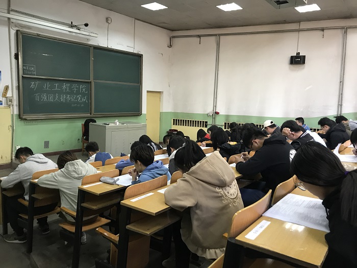 为了积极响应学校实施的“领头雁”计划,深入学习贯彻习近平新时代中国特色社会主义思想,贯彻落实团的十八大精神,2019年10月26日下午三点,304永利集团在梅花教室M2举行“百强团支书”笔试,矿院全部团支书共计87名参加了考试。