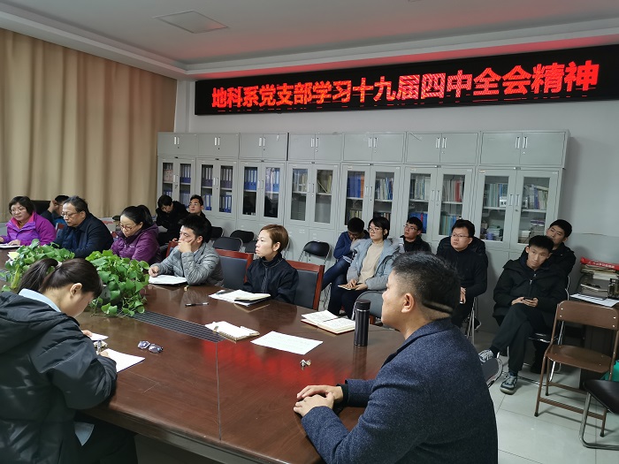 地科系召开党的十九届四中全会精神学习讨论会暨专题组织生活会