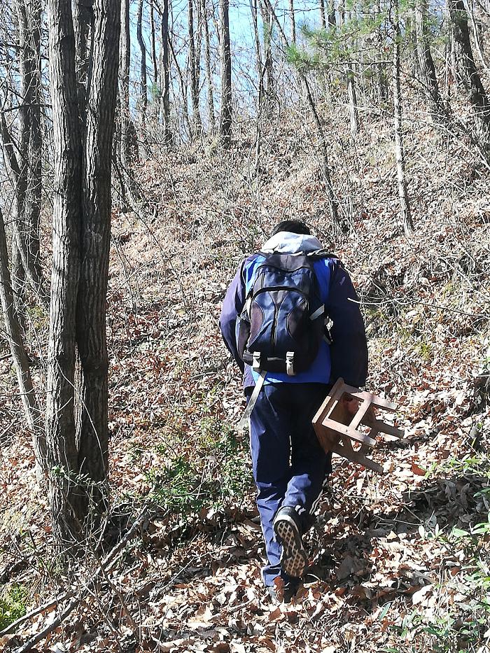 终于,在一个山顶上他找到了信号,搭了一个简易的草棚“教室”。每天去上网课都需要拿上小板凳走上一个多小时的山路。在林间穿行,路边满是荆棘,为防止划怀衣服,只好穿上高中时破旧的校服。