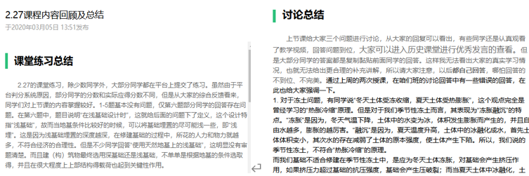 在学生完成视频学习后,通过课上和课下的练习、测试和作业等多种形式了解学生的学习效果。通过学生的反馈,总结共性问题,于腾讯会议中进行详细的讲解。同时将这些共性问题撰写成文字,以公告的形式发布于慕课堂中,以便学生随时查看,进行知识回顾。