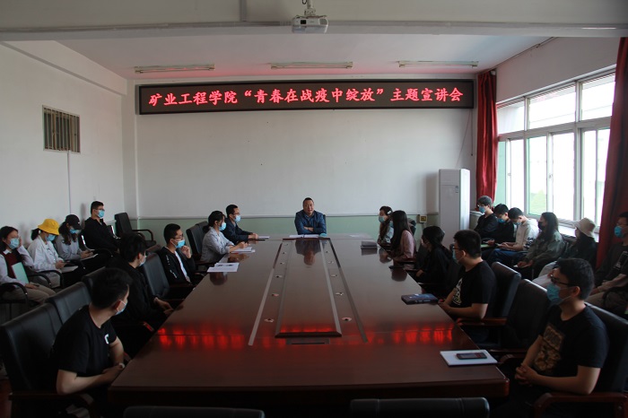 为了激励我院青年学生进一步坚定制度自信,在坚决打赢疫情防控人民战争、总体战、阻击战中担当作为,5月1日上午,矿业学院党委副书记巴大志在致明楼318会议室召开“青春在战疫中绽放”主题报告会。