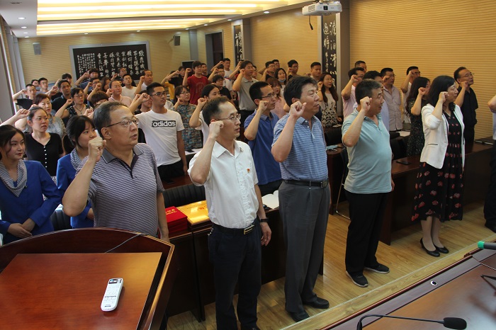 院党委书记薛武杰传达了习近平总书记视察山西重要讲话指示和全国“两会”精神。结合中国共产党成立99周年光辉历史,特别是党的十八大以来以习近平同志为核心的党中央带领带领全党全军全国各族人民进入了新时代,伟大祖国从富起来到强起来的伟大成就,以及学校和学院全面贯彻从严治党要求,认真开展“不忘初心、牢记使命”主题教育,坚决打赢疫情防控阻击战,充分发挥基层党组织战斗堡垒和党员先锋模范作用,进一步弘扬正气,在教学、科研、学科建设、人才工程、国际化、学生管理、党建和思想政治教育等工作取得的成就,为大家做了党课教育,号召全院各级党组织和共产党员把政治建设摆在首位,履职尽责,增强担当意识,“不忘初心、牢记使命”,在双一流建设中作出积极贡献。并代表学院党委宣读了《304永利集团党委关于表彰先进集体和个人的决定》。巴大志副书记领誓,进行了新党员入党宣誓、老党员重温入党誓词。
