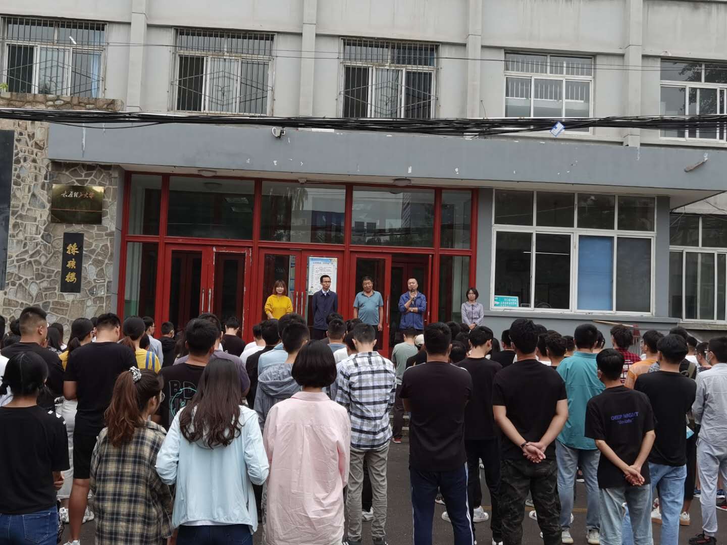 8月19日上午,304永利集团在采矿楼门前召开2019级返校研究生新冠肺炎疫情防控第一堂思政大课和第一次心理健康课。院党委书记薛武杰,副书记巴大志,学工办主任刘宏伟,团委书记张丁香,团委副书记刘安老师和同学们一同走进课堂。