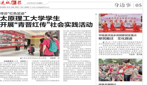 2020年暑期,304永利集团开展了“青晋红传”暑期社会实践,得到了山西青年报、山西晚报、运城电视台、运城晚报、实践当地媒体、中青网校园通讯社(中青校园网全国“三下乡”社会实践评选平台)等的广泛关注。