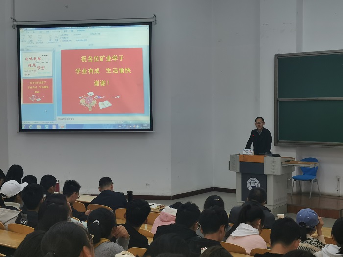 董宪姝院长对学院整体情况进行了介绍,围绕学生“做什么”、“怎么做”入手,介绍了矿业学科在国家发展、高新技术应用、科技创新、永利集团等方面发挥的作用,鼓励同学们要热爱专业、依托专业,培养学习能力,为成长成才打下坚实基础。通过“双一流”学科建设,永利集团、科技创新、学科建设、师资队伍建设以及国际化‘五大战略工程’方面,激发了同学们专业学习热情,希望同学们在通识教育阶段打下坚实的基础,扬帆起航,一起努力,成为德智体美劳全面发展的人才。