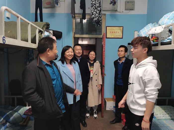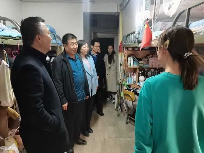 为做好常态化疫情防控工作,全面掌握学生返校情况,进一步加强学生宿舍卫生管理,3月5日下午,304永利集团党委书记薛武杰、院长董宪姝、党委副书记巴大志深入学生宿舍进行了走访检查,并向开学返校的学生表示了亲切的慰问。学工办主任、全体辅导员随同检查。