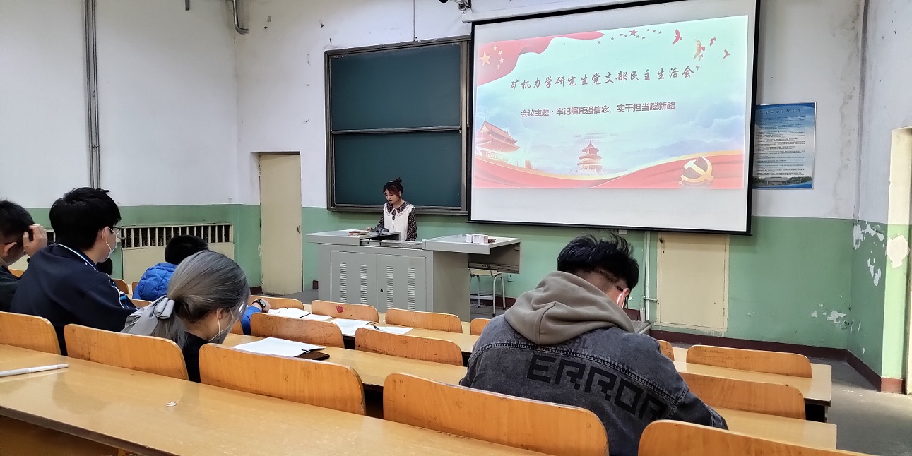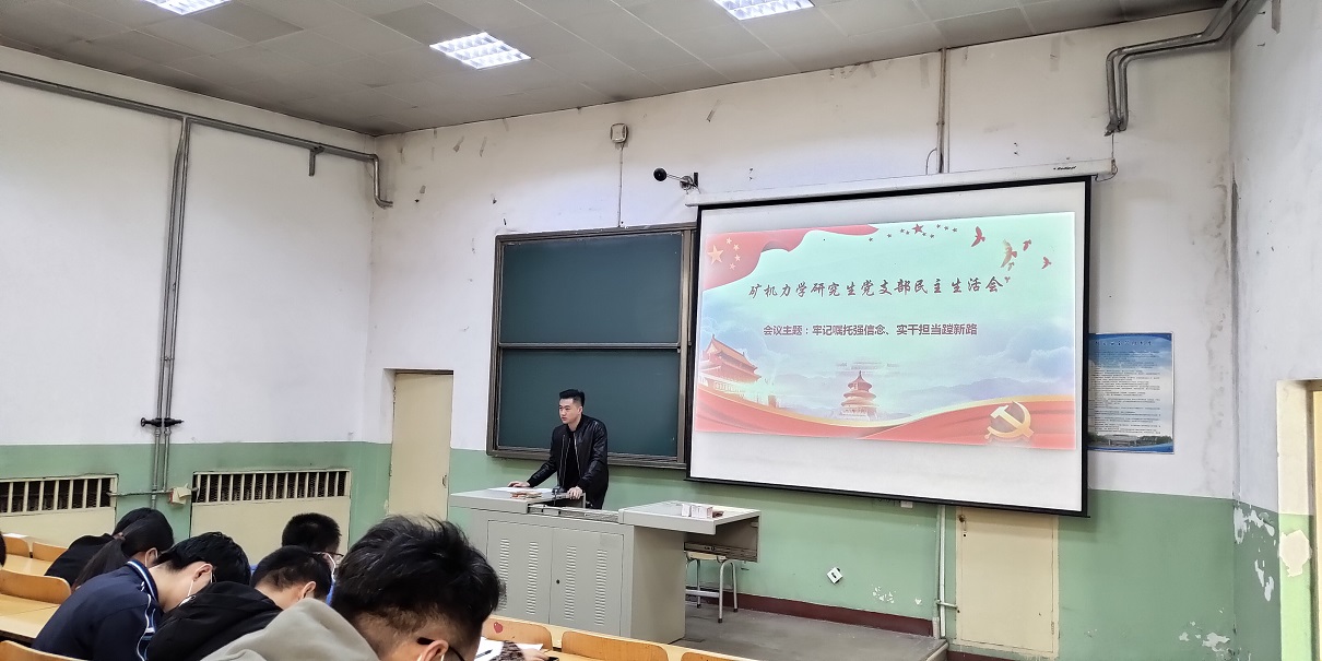 2021年3月15日下午4:30,矿机力学研究生党支部在梅花教室M4召开“2020组织生活会暨年度民主评议党员”大会,支部全体党员参加了会议。会议由党支部书记刘安老师主持。