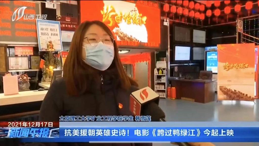 本次观影活动在支部党员中引起热烈反响,影片观看结束后,我支部学生党员韩雪莲、林永清接受山西午报的采访。韩雪莲说,我们今天的幸福生活来之不易,是革命先烈用鲜血和生命为我们换来的,作为当代大学生,我们应该刻苦学习,担当起民族复兴的大任,为祖国建设贡献出自己的力量。林永清说伟大的抗美援朝战争波澜壮阔,伟大的抗美援朝精神历久弥新,影片中有很多的片段让他十分感动,彰显出革命先烈人生无处不青山的伟大品质,值得我们每一个学生党员去终生学习。