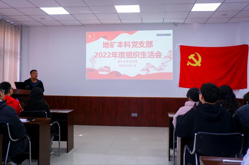 2023年3月1日,根据学院党委的安排,地矿本科党支部在致明楼208会议室召开2022年度组织生活会暨民主评议大会。会议由支部书记姚冬洁主持。