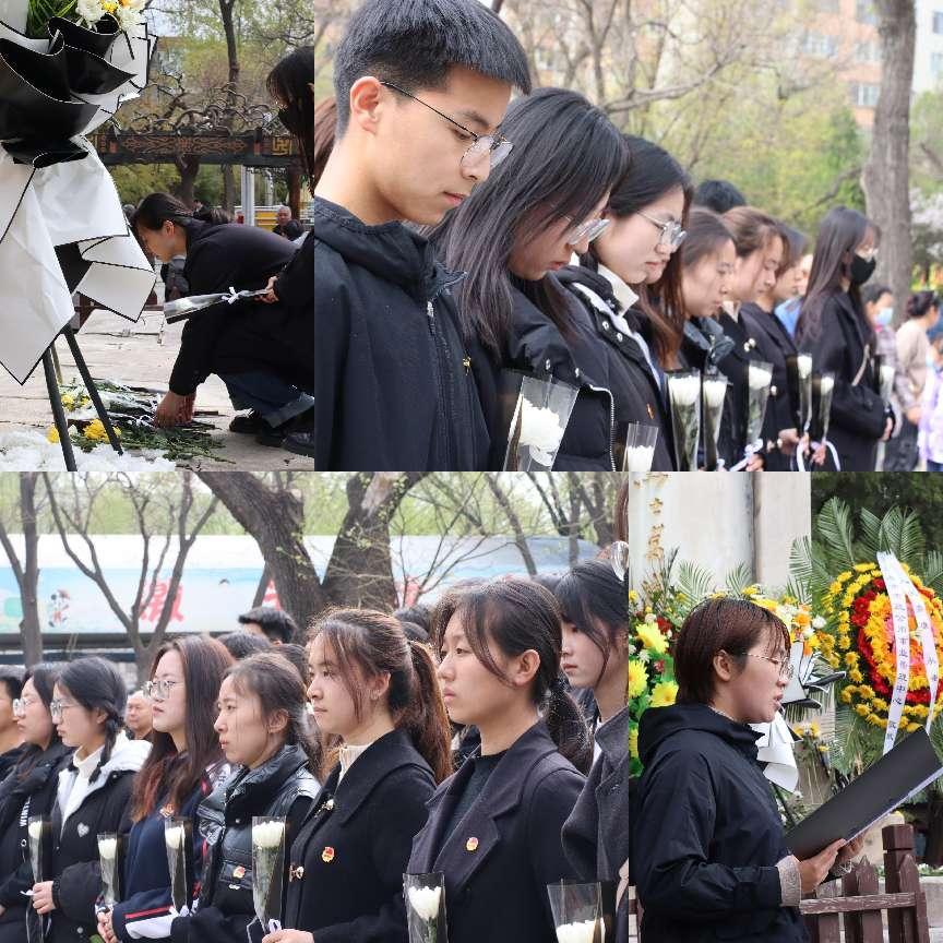 上午九时许,304永利集团“缅怀革命先烈,弘扬民族精神”清明清明祭扫活动正式开始。在文瀛公园革命烈士纪念塔前,团委副书记刘安老师与全体学生代表低头默哀致敬,表达对革命先烈敬仰和哀思之情。默哀仪式结束后,团委书记刘安老师致悼词,表达了对革命先烈的缅怀,希望矿院学子能够继承和发扬革命先烈的爱国主义精神,做无愧于先辈嘱托、无愧于党的关怀、无愧于祖国和人民的殷切期望的一代。随后,全体学生代表向烈士纪念塔敬献鲜花,表达对革命烈士的崇高敬意和深切悼念之情。