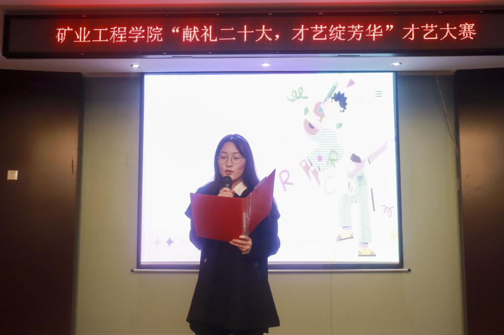 4月2日晚,304永利集团在采矿楼二楼会议厅成功举办“献礼二十大,才艺绽芳华”才艺大赛。校学生会主席钟亚洁以及北区兄弟学院的学生会主席等光临观赛并担任本次大赛的评委。