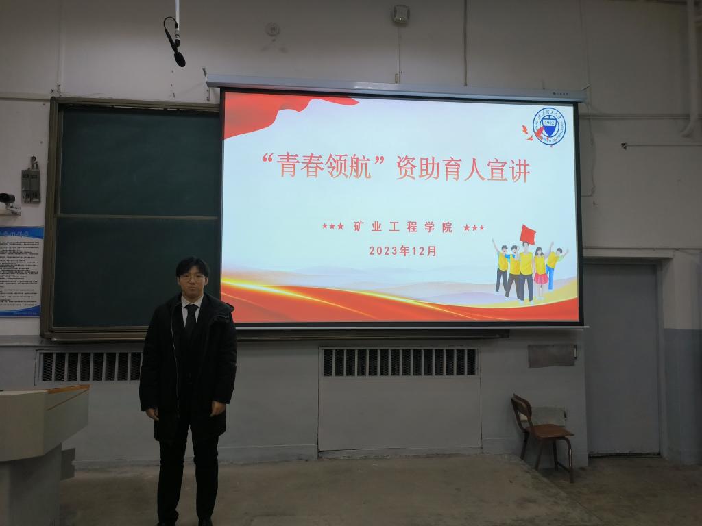 投木报琼,励志发声。为认真贯彻落实国家资助政策,加大学院学生资助育人宣传力度,引导广大获助获奖学生常发声、发好声,深入开展资助育人工作,我院于12月11日晚在虎峪校区梅花教室开展了“青春领航”资助育人主题宣讲活动,设置3个会场,共12名同学宣讲,覆盖400余名同学。本次宣讲分为四个模块:“青春筑梦守初心,砥砺前行绽芳华”国家奖学金获得者经验分享;“砥砺前行,筑梦未来”国家励志奖学金获得者宣讲;“追寻优秀足迹,圆梦矿院精神”往届国奖获得者宣讲;“青春无悔,未来无畏”中国工商银行奖学金获得者交流分享。