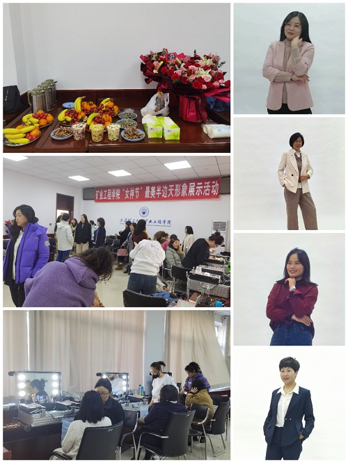 本次活动专门邀请专业摄影团队,为学院笔耕不辍、润育桃李、守望科学的女教师了进行了一次形象摄影。活动期间,院工会为参加活动的老师们准备了鲜花和小食。活动场面热闹非凡,四位化妆师一排展开,大家有序等待,边聊天边造型,边合影边开怀,形象展示过程欢声笑语连绵不断,感觉快乐都溢出了活动室。平时在讲台上、实验室、教辅办穿梭的她们,在化妆师略施粉黛画龙点睛后,个个形象绝佳妖娆丽质,展示出了矿业学院女教师的风采。活动后老师们都意犹未尽,特别享受展示自我和互相交流的机会。