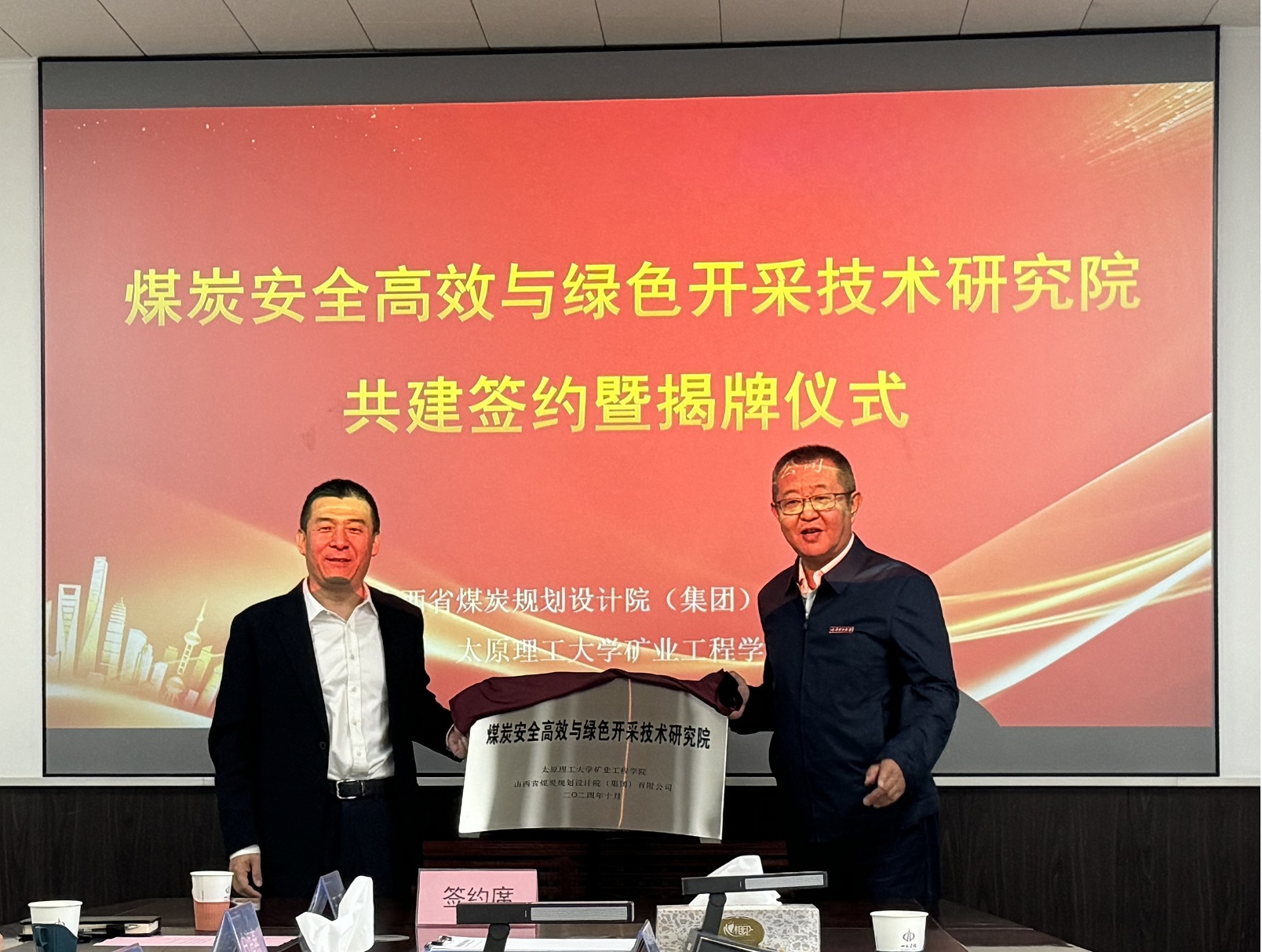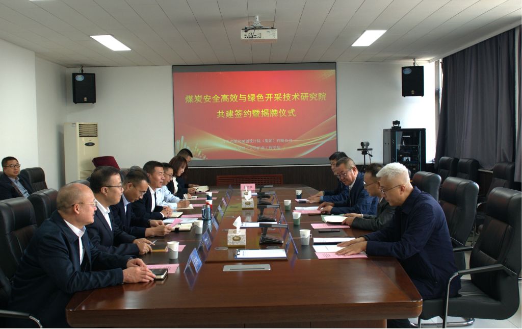 2024年10月15日,在院党委书记张忠璞、院长王开带领下,304永利集团一行赴山西省煤炭规划设计院(集团)有限公司(简称“煤规院”)出席“煤炭安全高效与绿色开采技术研究院”共建签约暨揭牌仪式。
