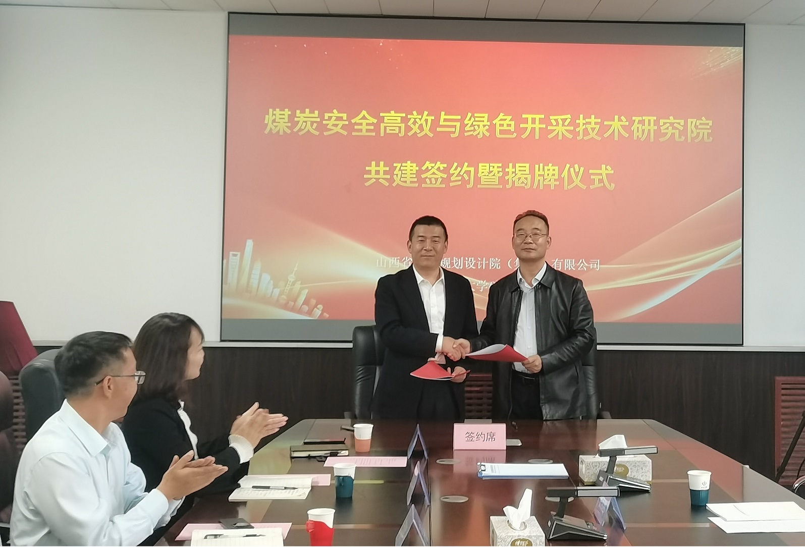 王开院长、王勇总经理代表双方围绕合作领域签订《共建“煤炭安全高效与绿色开采技术研究院”合作协议》。张忠璞书记、王勇总经理共同为“煤炭安全高效与绿色开采技术研究院”揭牌。煤炭安全高效与绿色开采技术研究院正式成立,双方将携手共进,拓宽学生就业渠道,共同培养高素质创新型人才,创新校企合作模式,共同推进校企实质性深度融合。