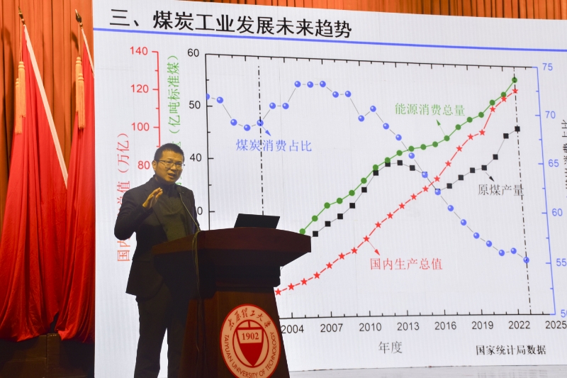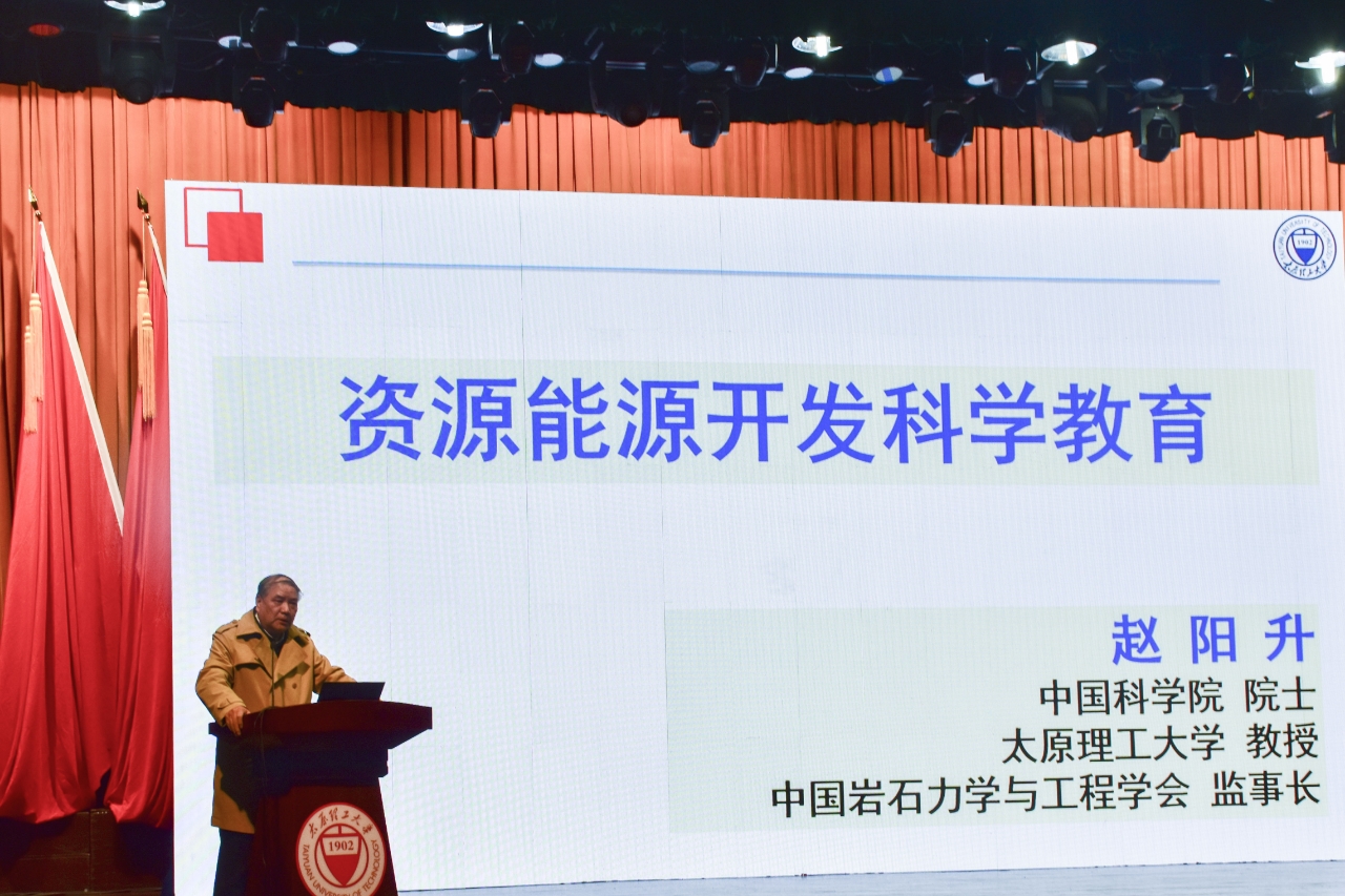 王开院长围绕专业情况、学科建设、高层次人才、就业前景等方面向学生介绍了学院基本概况。赵阳升院士结合自己的成长经历和未来能源方向为同学们做了资源能源开发科学教育讲座,通过分享许多伟大科学家的趣闻,强调了“所谓大学之大,非有大楼之谓也,乃有大师之谓也”的重要性,寄希望于学生从组织能力与专业能力去培养自己。冯子军副院长以《“靠山”-矿业》为主题,介绍了煤炭工业发展未来趋势,矿业人的职业发展,全球矿业战略等。张忠璞书记指出选择的重要性,要把个人命运与国家命运同频共振,做到心中有信仰,脚下有力量。